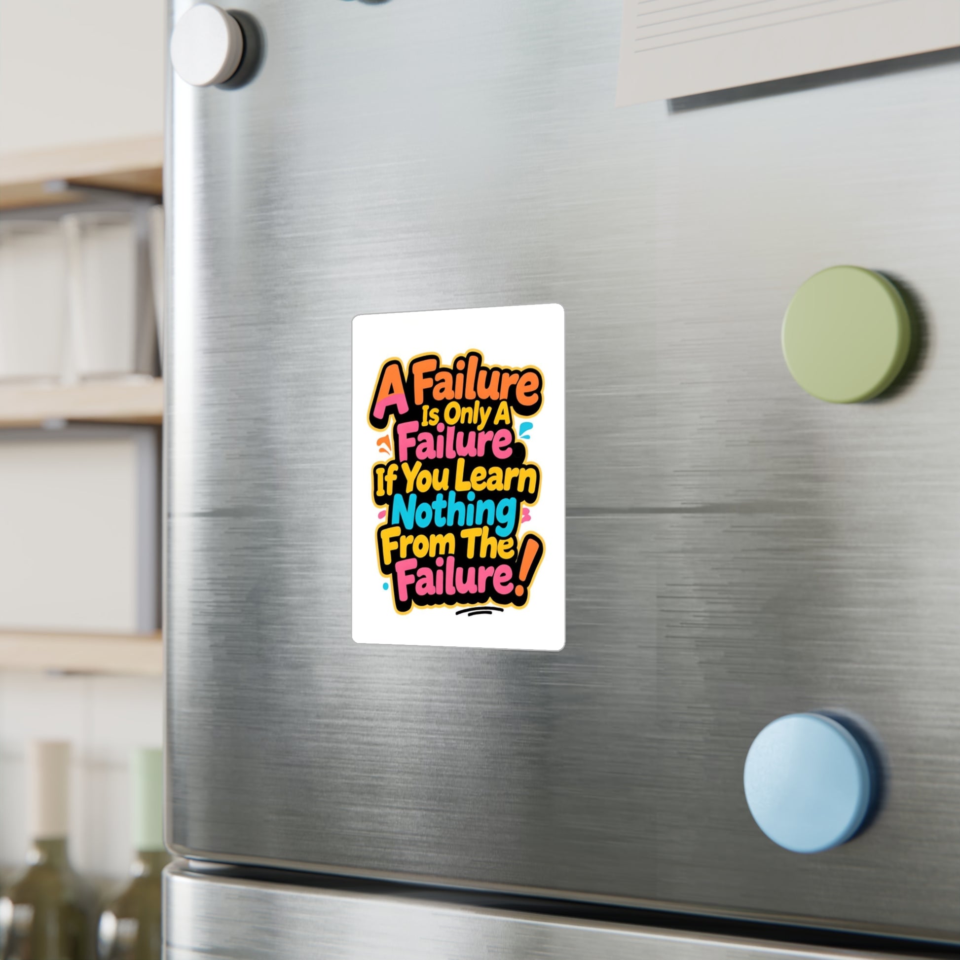 Bright, bold vinyl decal that speaks like a friend who refuses to let you quit. The colorful lettering—sunny yellows, punchy pinks and electric blues—pops against the satin white background and holds up outdoors. Apply it to a laptop, water bottle, notebook, studio window, or gear case to remind yourself (and everyone passing by) that mistakes are just steps toward something better. The border makes the sticker easy to peel and place, while the removable adhesive lets you swap locations without gummy residue. Built to stay vivid through rain and sun, this decal keeps its message loud and clear for seasons of use.