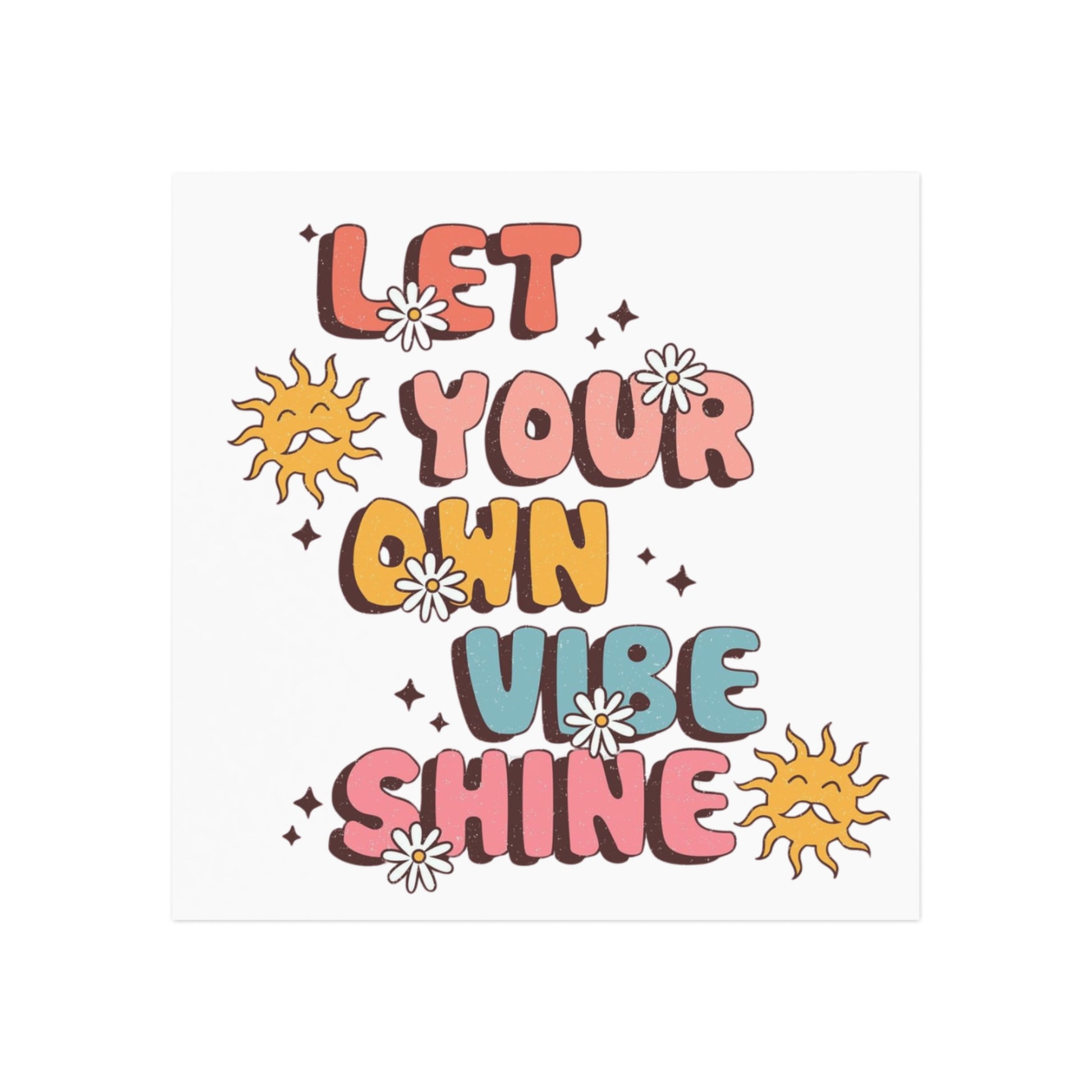 A bright, square magnet that brings a retro, sun-kissed vibe to any metal surface. Cheerful, hand-drawn lettering reads a positive mantra surrounded by playful daisies and warm sun icons. The matte white base and stipple texture give the art a tactile, vintage feel while the vibrant UV-printed colors stay bold outdoors. Stick it on your car, cooler, or fridge to spark a small moment of joy every time you see it.