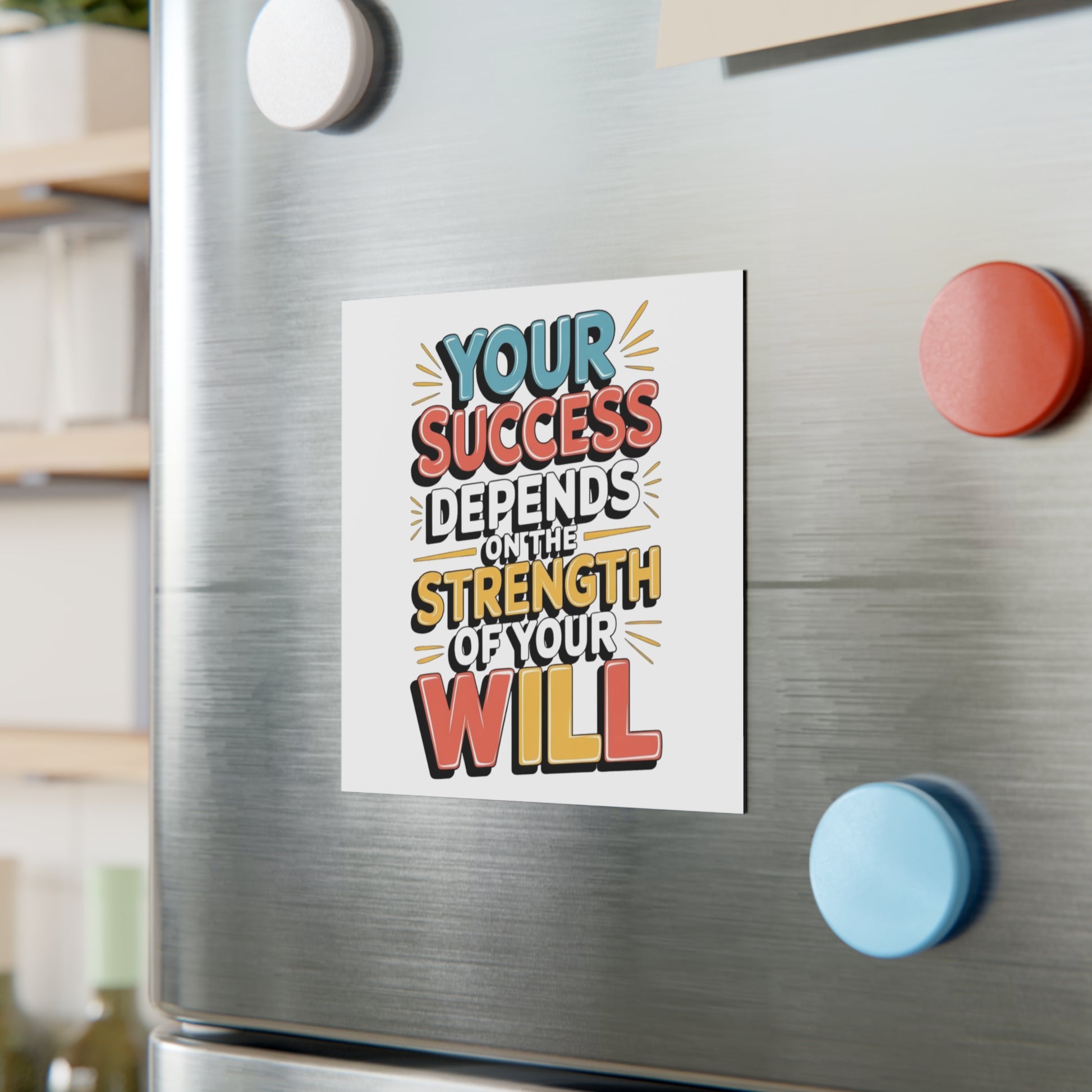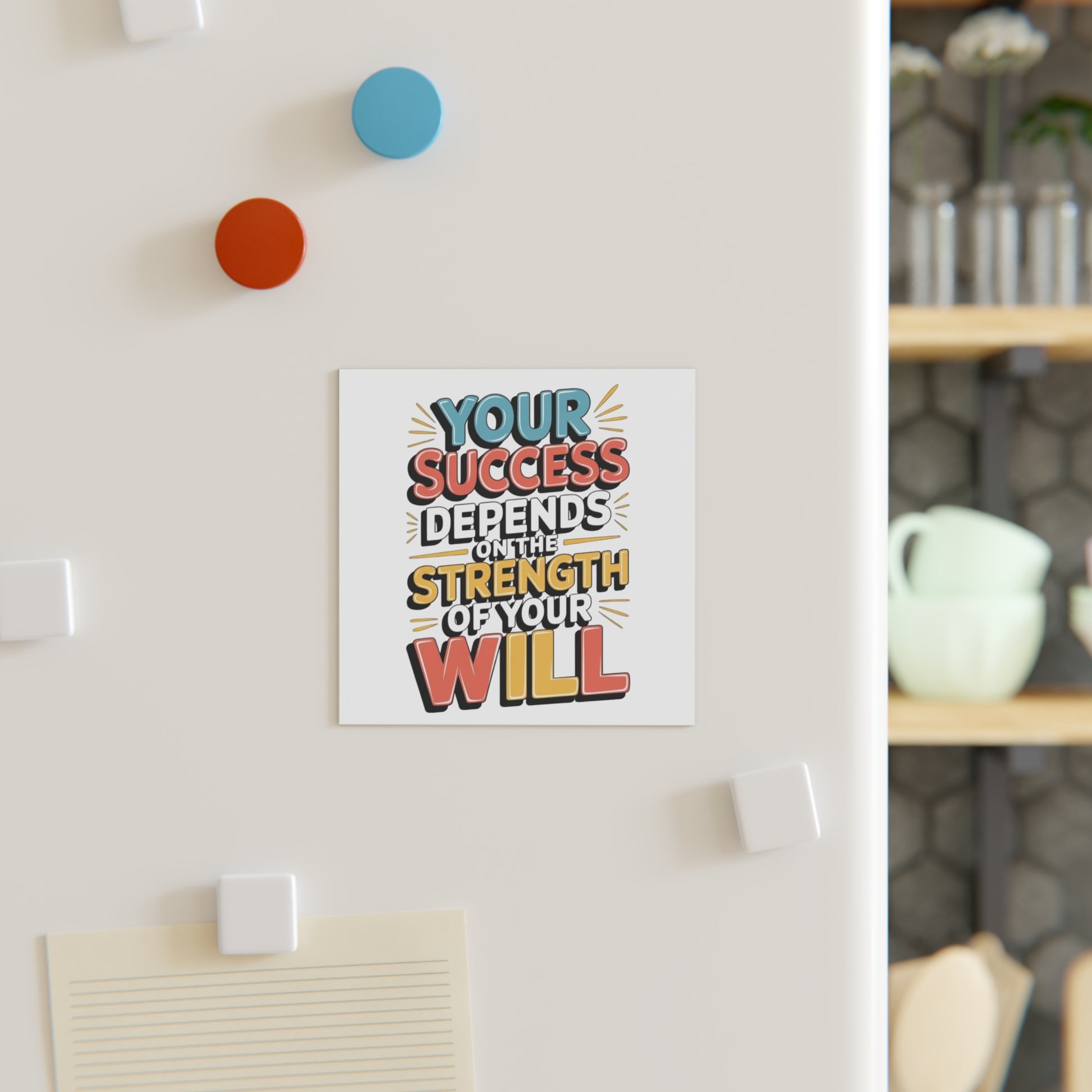 'Your Success Depends on the Strength of Your Will' Square Magnet